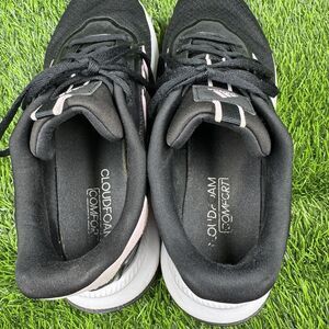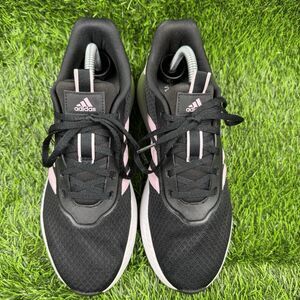Stylish adidas sneakers. Black upper with pink accents. Comfortable and trendy design. Nothing wrong with these in perfect condition just to big for my feet
