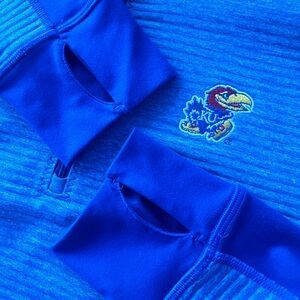 adidas 🏀 Women’s Blue Heather ClimaLite ‘KU JAYHAWKS’ Performance Half Zip - S