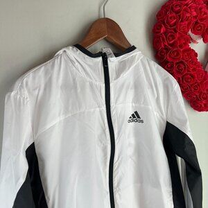 adidas Women's Logo Running Windbreaker Hoodie XS Black White HF2149