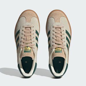 The go-to classic, adidas Gazelle shoes transcend it all: trend, age, personality type and most of all, time. Introduced in 1996, they're still one of the most-loved designs from adidas. This version is made with materials and details true to the era they were born — think premium suede, metallic-gold branding and the signature T-toe. A triple-stacked gum outsole gives it a boost, along with a lace jewel detail made of colorful pearls and a metallic-gold pin.