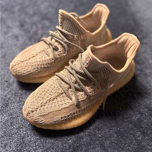 Stylish adidas Yeezy Boost 350 V2. Features a tan knit upper. Comfortable and trendy design. Priced according due to a sole issue. Please refer to last photo.