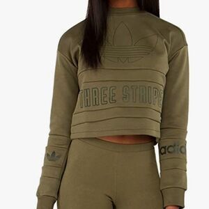 adidas olive three stripes one of a kind tie dye pullover crop sweatshirt Sz XS
