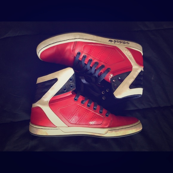 red white blue adidas high top