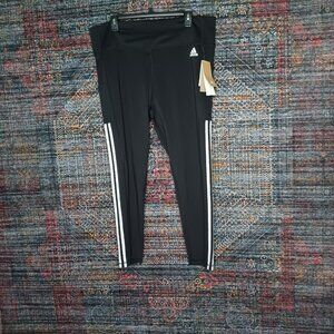 adidas womens black an white striped 7/8 PRIMEGREEN Aeroready tights 2XL NWT