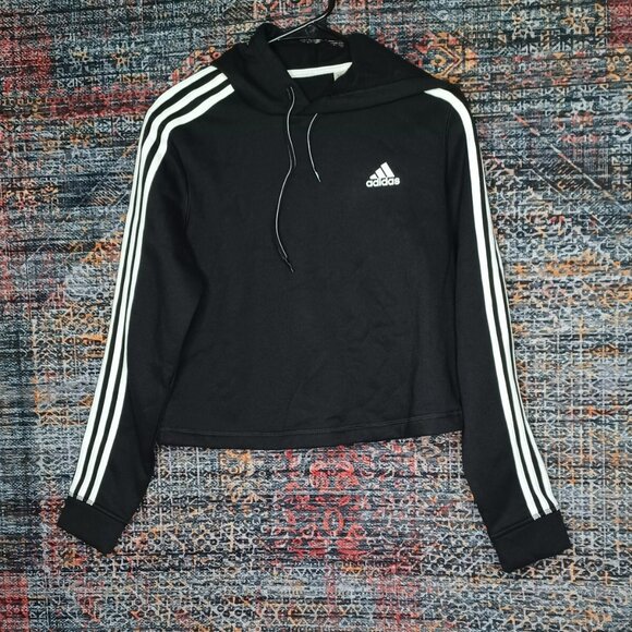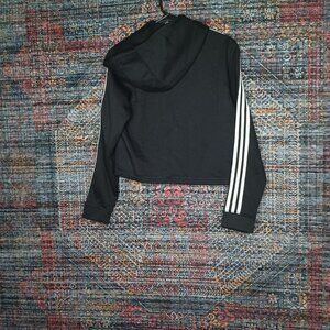 adidas womens black an white striped sleeves lined crop hoodie S