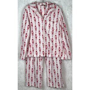adonna Large 2 Piece Long Sleeve Pajama Set White Red Pink Hearts Valentine