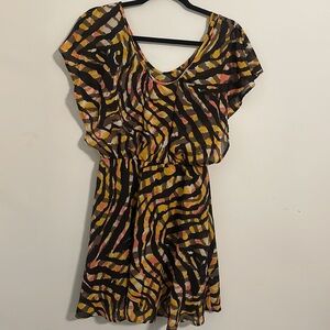 adorable black zebra stripe dress with pink & yellow form fitting small