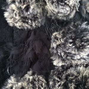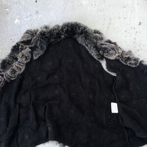 Super cute wool and silk rabbit fur vest. Also has silk crêpe flowers that I show in pictures. In very good condition. The size is large, but I will include measurements also. Across the shoulders is approximately 14.5 pit to pit is 18 cross. The bottom is also 18 and from the bottom of the collar to the bottom of 25.
