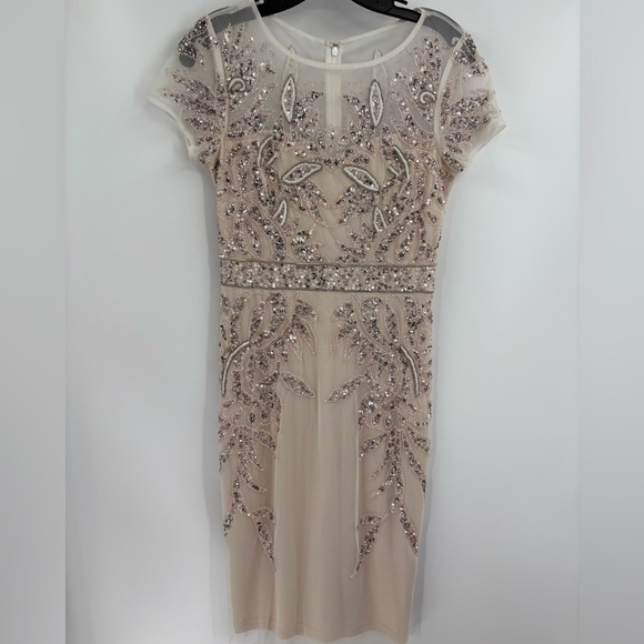 adrianna papell Embellished Mesh Sequin Cocktail wedding Formal Gown dress 2 NWT