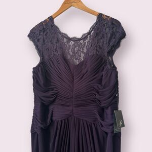 adrianna papell dress Like A Glove NWT Purple Lace Shoulders Shirred Plus 16