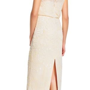 Brand new with tags still attached. feminine take on the timeless, runs small with form-fitting silhouette, Beaded blouson cap sleeves with sheer neckline. The back of this dress has an exposed zip fastening and slit. perfect for a formal wedding especially mother of the bride and also as a wedding gown. Beautiful detailed gown. Retail price $349. AP1E201309_AB273