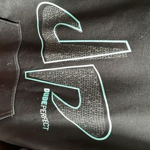 Size Large, Black hooded long sleeve sweatshirt with Dude Perfect Logo