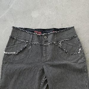 aem'kei striped pants. Distressing around the waistband and pockets. Size 30.