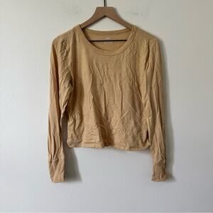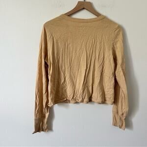 Features: gold, yellow, long sleeve, cropped, boxy fit, soft, crewneck, ribbed cuffs