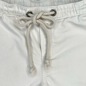 Pull on elastic waist drawstring frayed hem denim shorts by aerie in white sz small