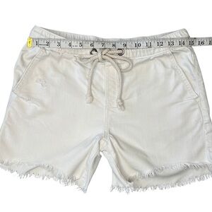 aerie Drawstring Pull On Elastic Waist Frayed Raw Hem Jean Shorts White Small S