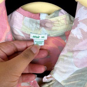 aerie Floral Hibiscus Pastel Camp Shirt M