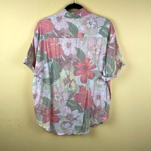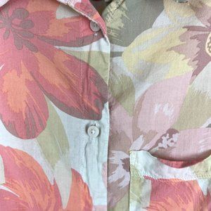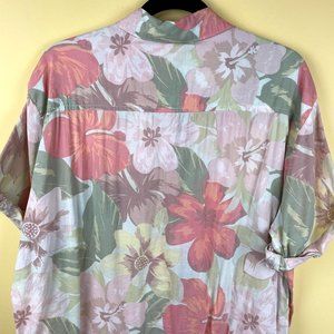 aerie Hibiscus Pastel Button Down Camp Shirt M