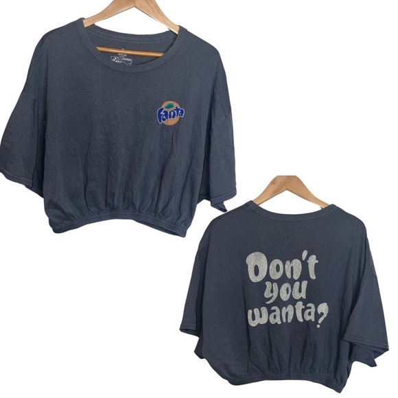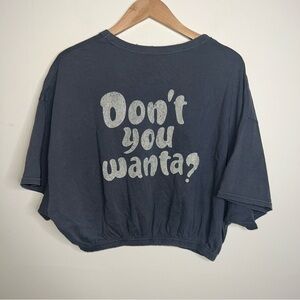 aerie Offline “Fanta” “Don’t You Wanta?” Cropped Shirt Gray
