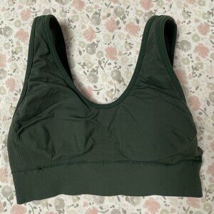 aerie SMALL Ribbed Sports Bra / Top - Dark Green - removable pads included