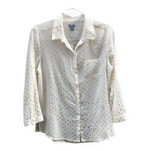 aerie Sheer Gold Polka Dot Long Sleeve Blouse Button Down Medium