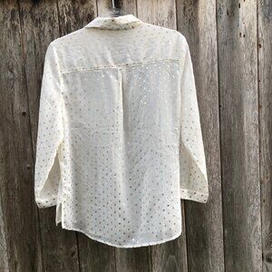 aerie Vintage Sheer Gold Polka Dot Blouse Button Down Shirt Top Long Sleeve Blouse