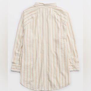 aerie XS Ivory Tan Vertical Stripe Pool-to-Party Linen Blend Cover up Shirt