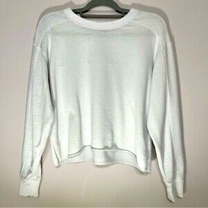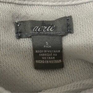aerie crewneck cropped distressed white athletic sweater cotton blend