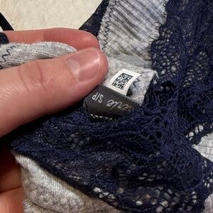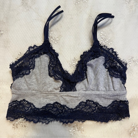 aerie gray and navy blue lacey bralette size small gently used no flaws!