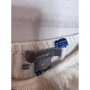 The Aerie romper in ivory blue with tassels is a stylish and comfortable one-piece outfit perfect for casual occasions in the summer or spring. This sleeveless romper features a cozy design that is easy to wear and care for, with machine washable fabric. The romper is designed for women in size medium, with a regular fit and a touch of vintage charm through the brand Aerie. Whether you're lounging by the pool or running errands, this romper is a chic choice for any season.