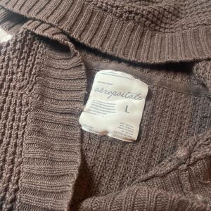 aeropostale vintage y2k brown fairy grunge longsleeve hooded button up knit cardigan. size large excellent condition see measurements. :)