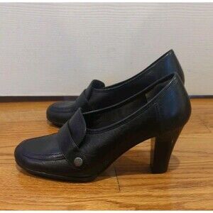 aerosoles Black Chunky Block Heel Penny Loafers Retro Y2K Goth Grunge Emo