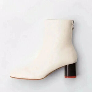 aeydē Germany Florence Block Heel Boot in Creamy White Nappa Leather Size 8