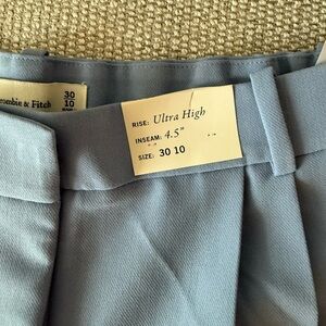 Abercrombie and fitch ultra high rise tailored shorts! First photos for style reference, actual color is a pretty baby blue:purple combo- maybe periwinkle? 4.5 inseam, size 10/30”. Originally $70. Brand new with tags.