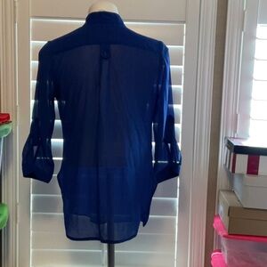 Chic sheer blouse in navy. Lightweight and stylish. Ideal for versatile wear.