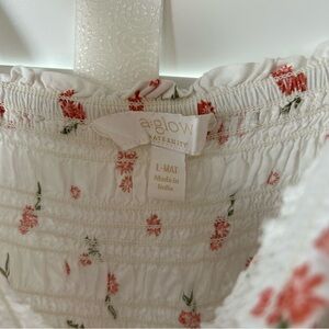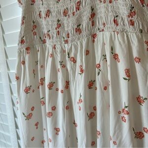a:glow Maternity Dress White Floral Smocked Spring Midi Sleeveless Large