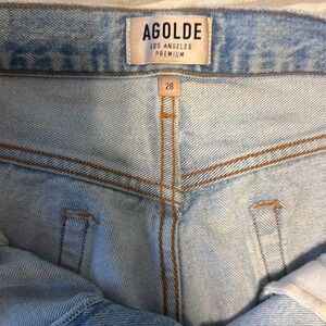 agolde style a026 g-811 size 28 light wash distressed cut off shorts