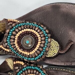 💜alegria PG LITE ZAN-802 Brown Suede Beaded Thongs Sandals Flats Casual Shoes