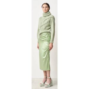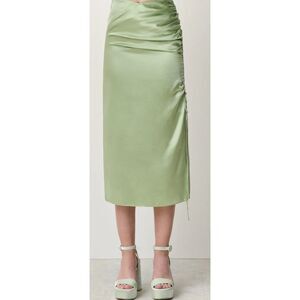 alejandra alonso rojas Side Ruched Silk Midi Skirt in Green NWT Size 2