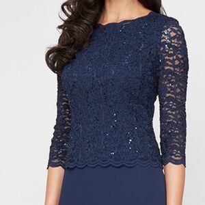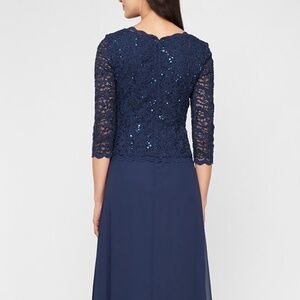 alexevenings.com Petite Long Gown w/Sequin Lace Bodice & Chiffon Skirt Size 14P