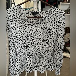 alfani tops blouses Size Petite Medium Animal Print Comfy Black/White Longsleeve