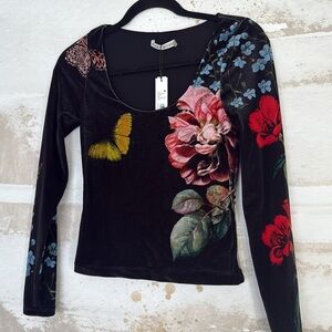alice + olivia DELAINA VELVET TOP size xs (nwt)