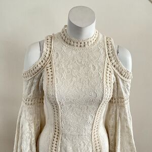alice + olivia Dress Cream Enya Embroidered Lace Mini Cold Shoulder