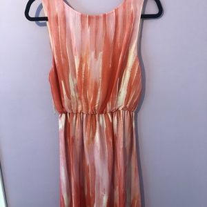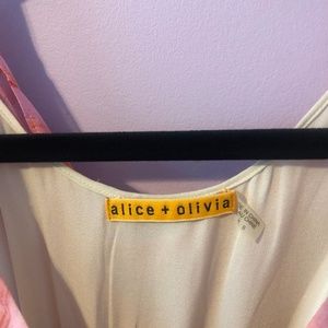 Brand new alice + olivia dress. Hits just above the knee with lightweight chiffon fabric. Nude lining. High neckline with drapped back.
