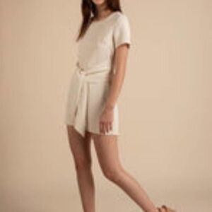 All:Row Tan Beige Belted tie waist Short Sleeve Romper size small