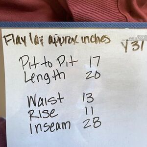 Size S, approximate measurements: PTP 17', Length 20", Waist 13", Rise 11", Inseam 28"