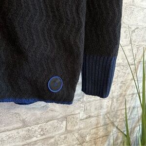 Stylish crewneck sweater by allbirds. Features a black body with blue accents. Perfect for casual wear.