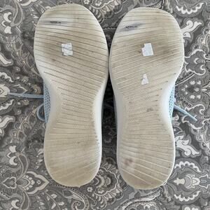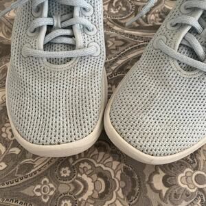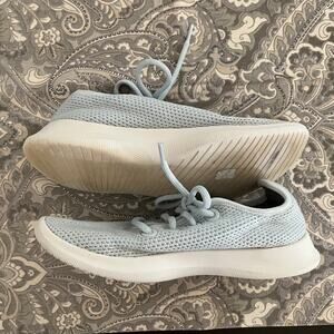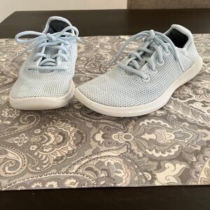 allbirds sneakers in a light blue.  Good, preowned condition with minimal signs of wear (staining on the top part of the shoe).  See pictures for details.  Women's size 8.