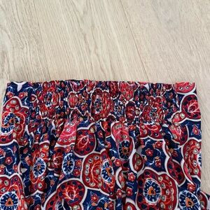 vintage aller simpliment red and blue silk flowy pants with elastic waistband