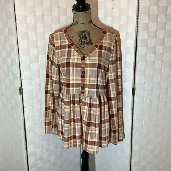 allison andrews multi color plaid blouse size Large fall winter Christmas Gift